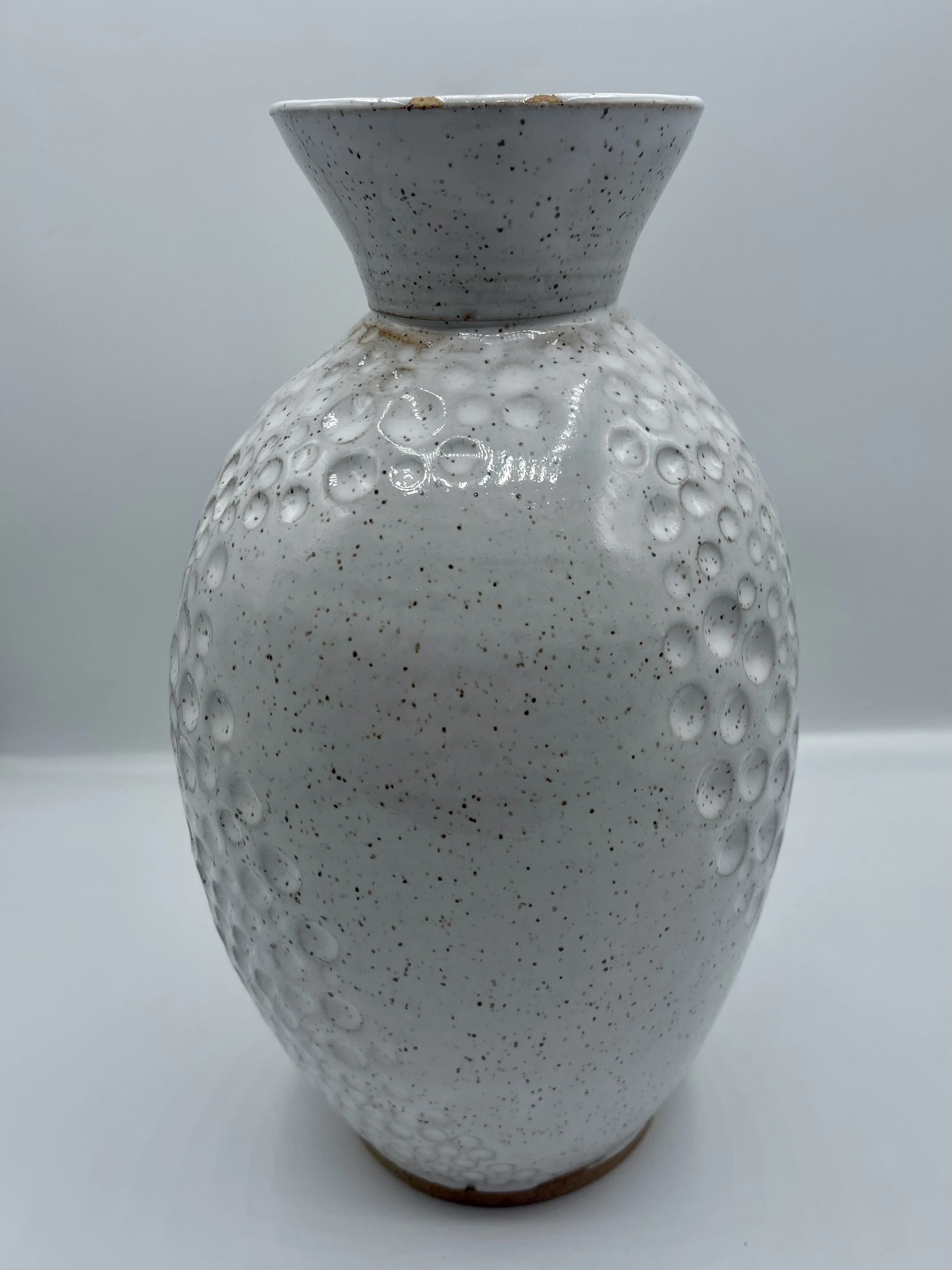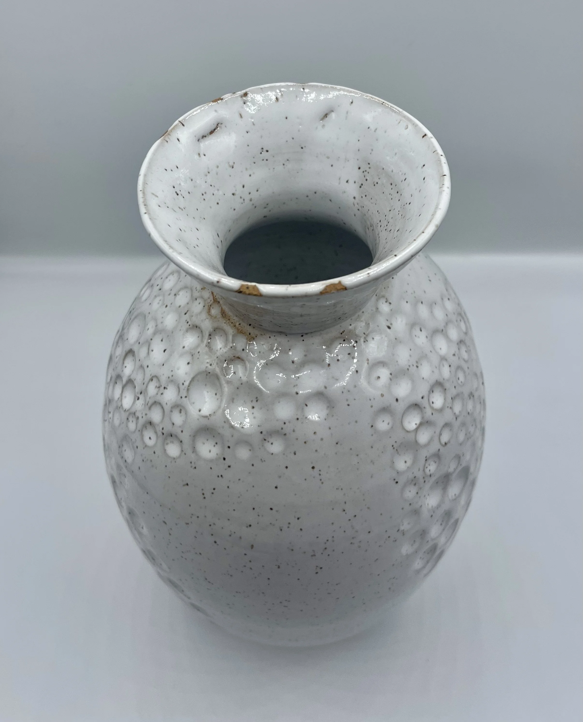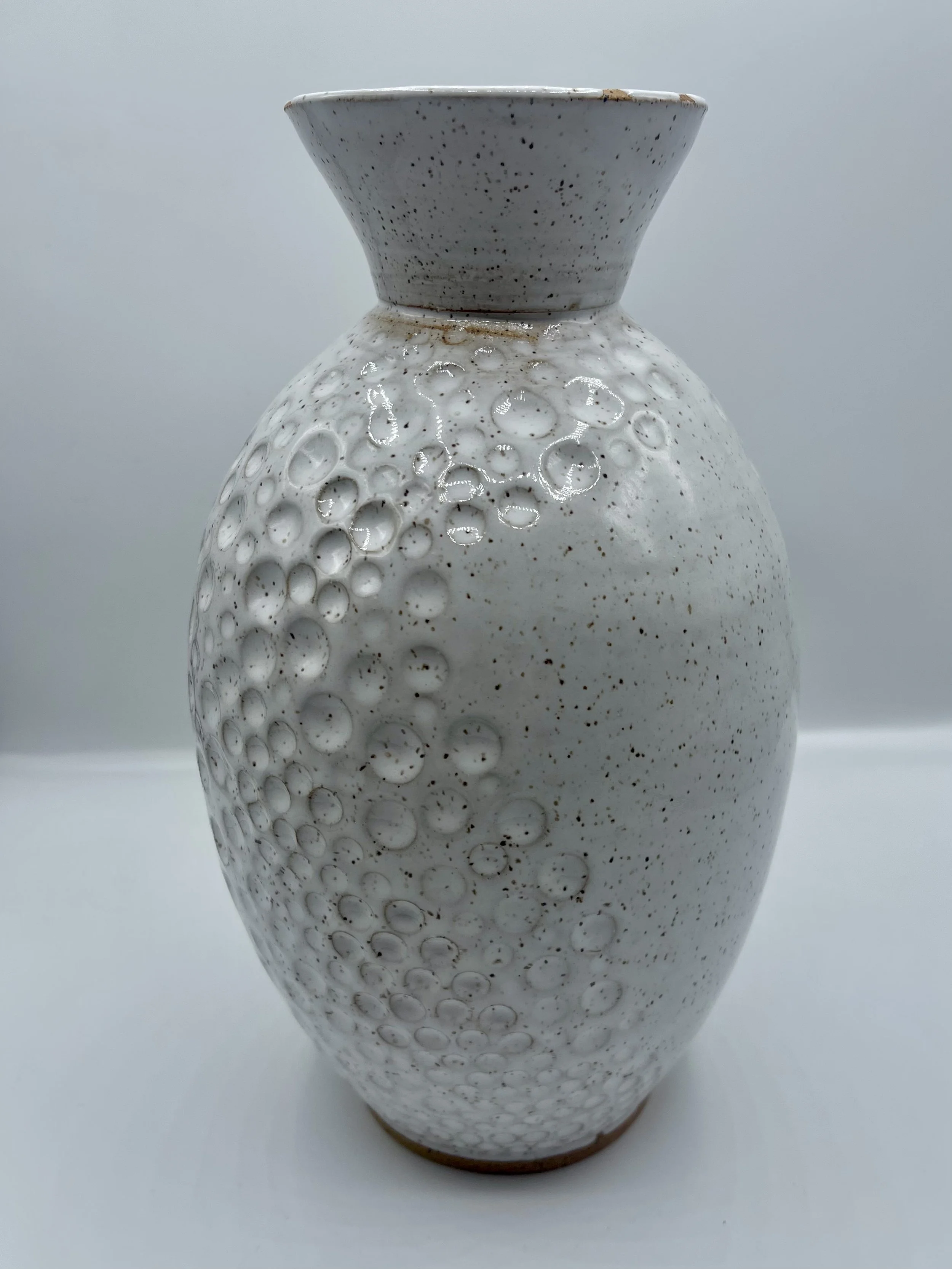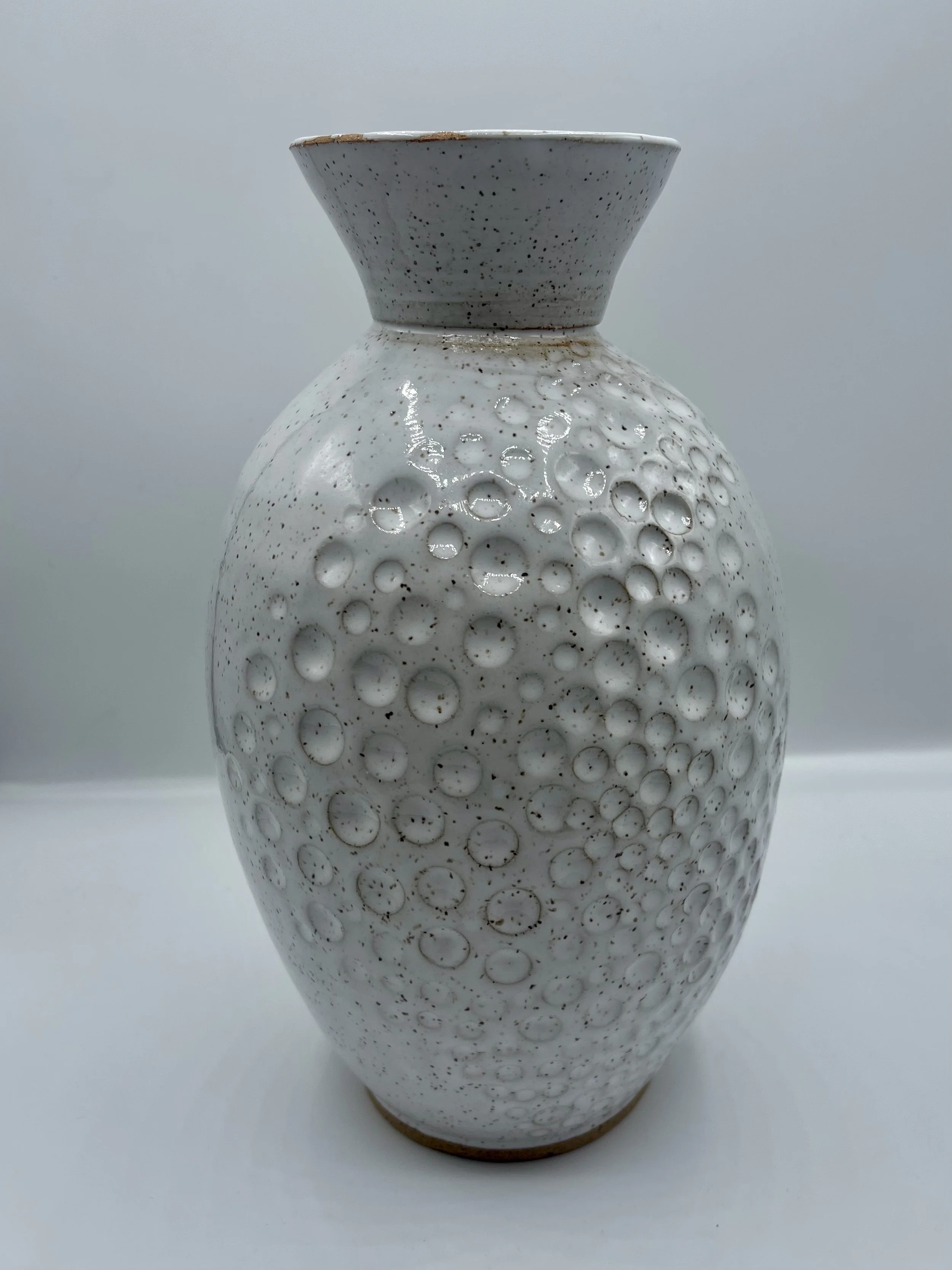 Categories: All Matcha/Sauce Bowls Pitchers fine art Coffee Pour Overs Citrus Juicers Clocks Incense Burners/Holders Sets Tea Pots Plates and Platters Jewelry holder Utensil Rest Spoon Rest Pet Bowls Jars Home Decor Mugs Cups and Tumblers Functional Items Chip and Dip Bowls Hand Painted Bowls and Dishes Vases Oil and Vinegar Jars Lidded Jars All / Tall white handmade vase with circle indent design $95.00 Handmade Porcelain Vase with Roses $80.00
