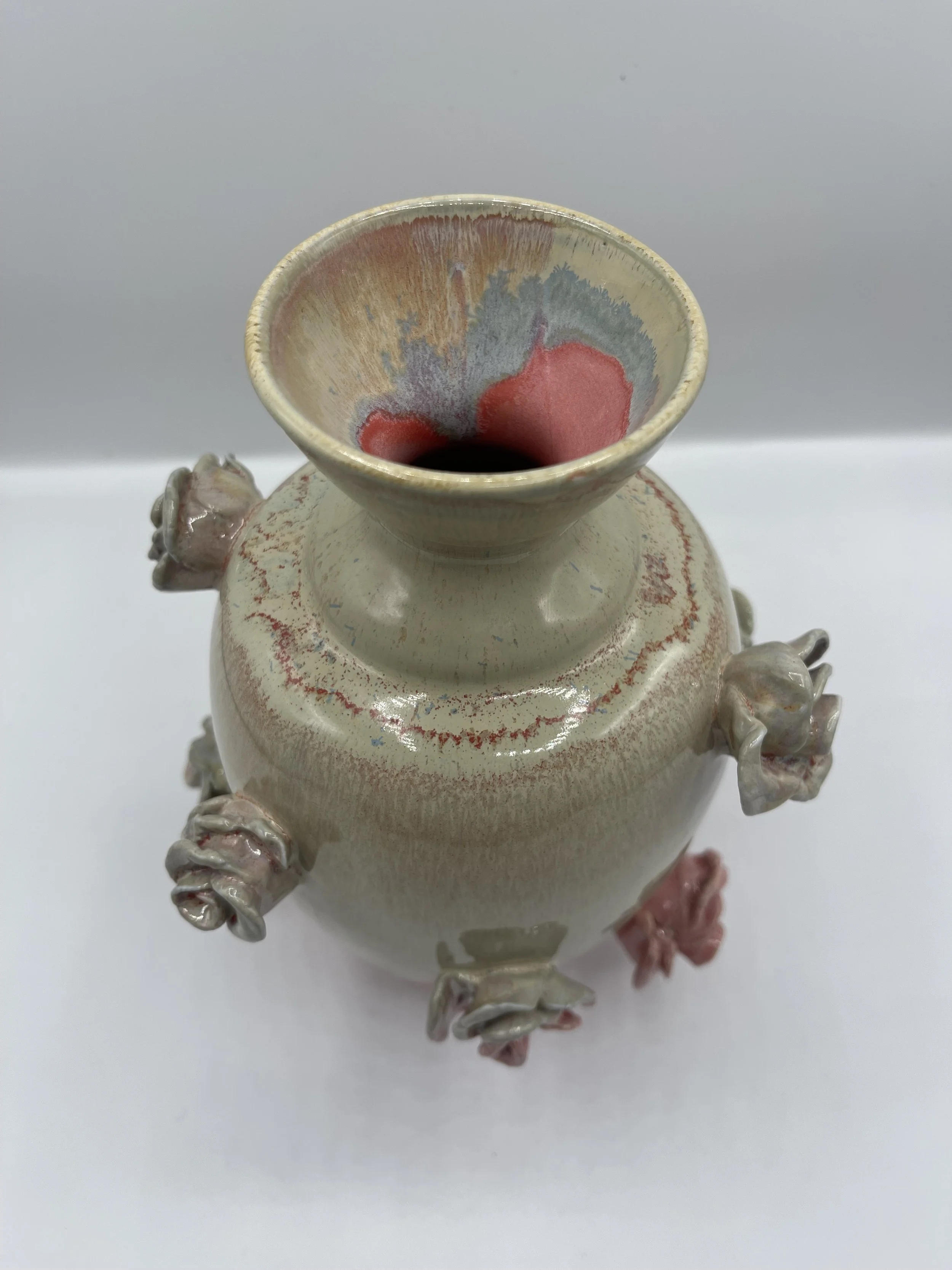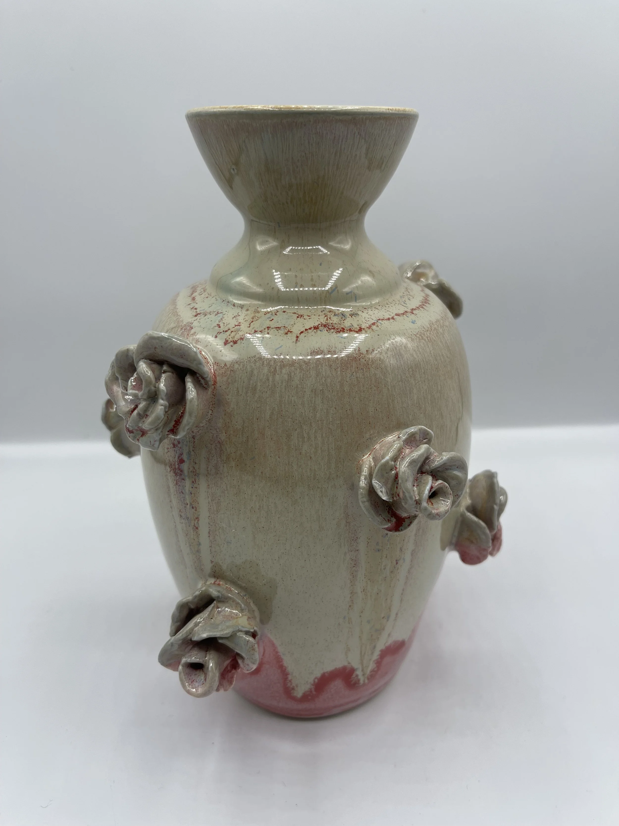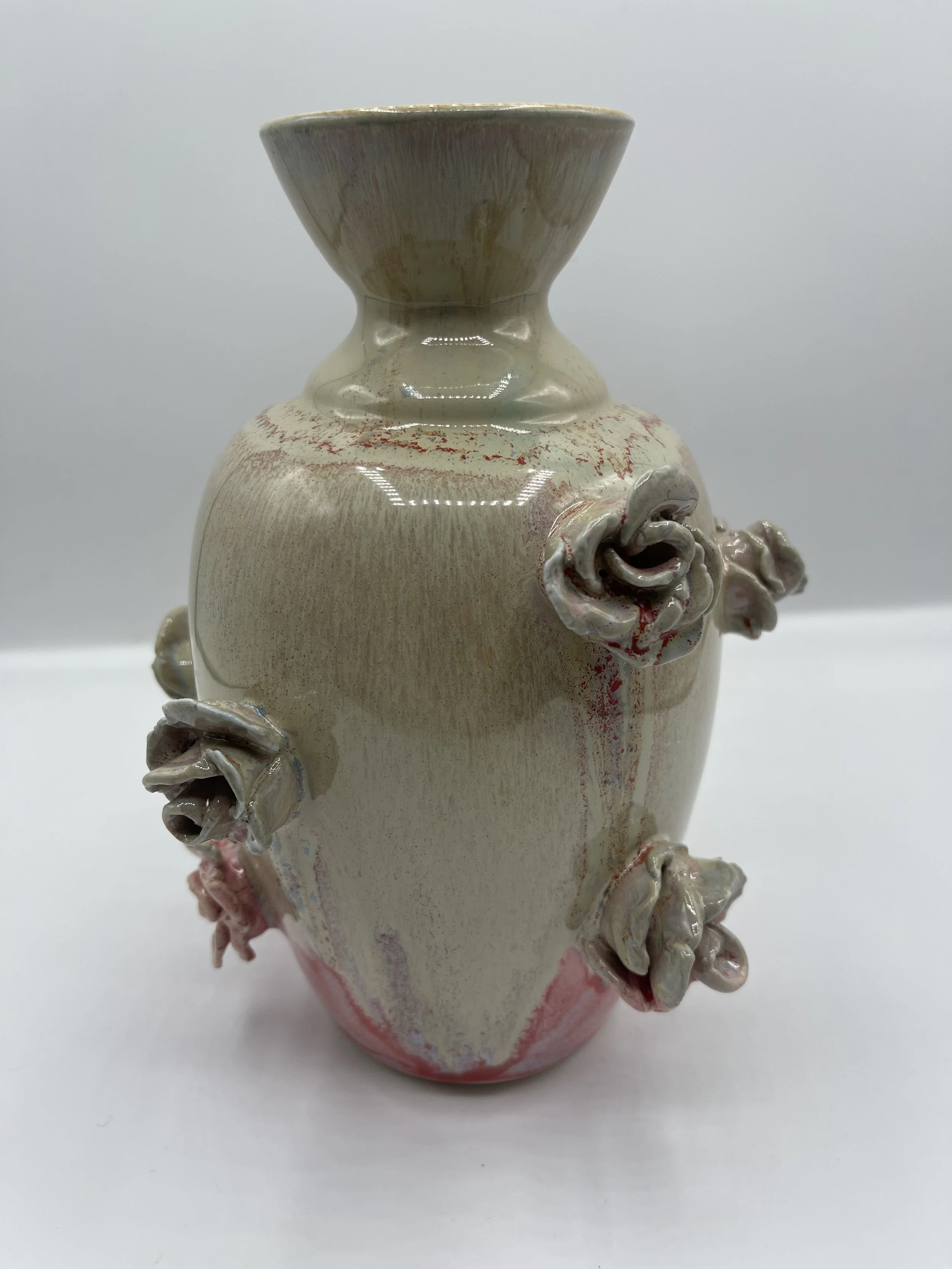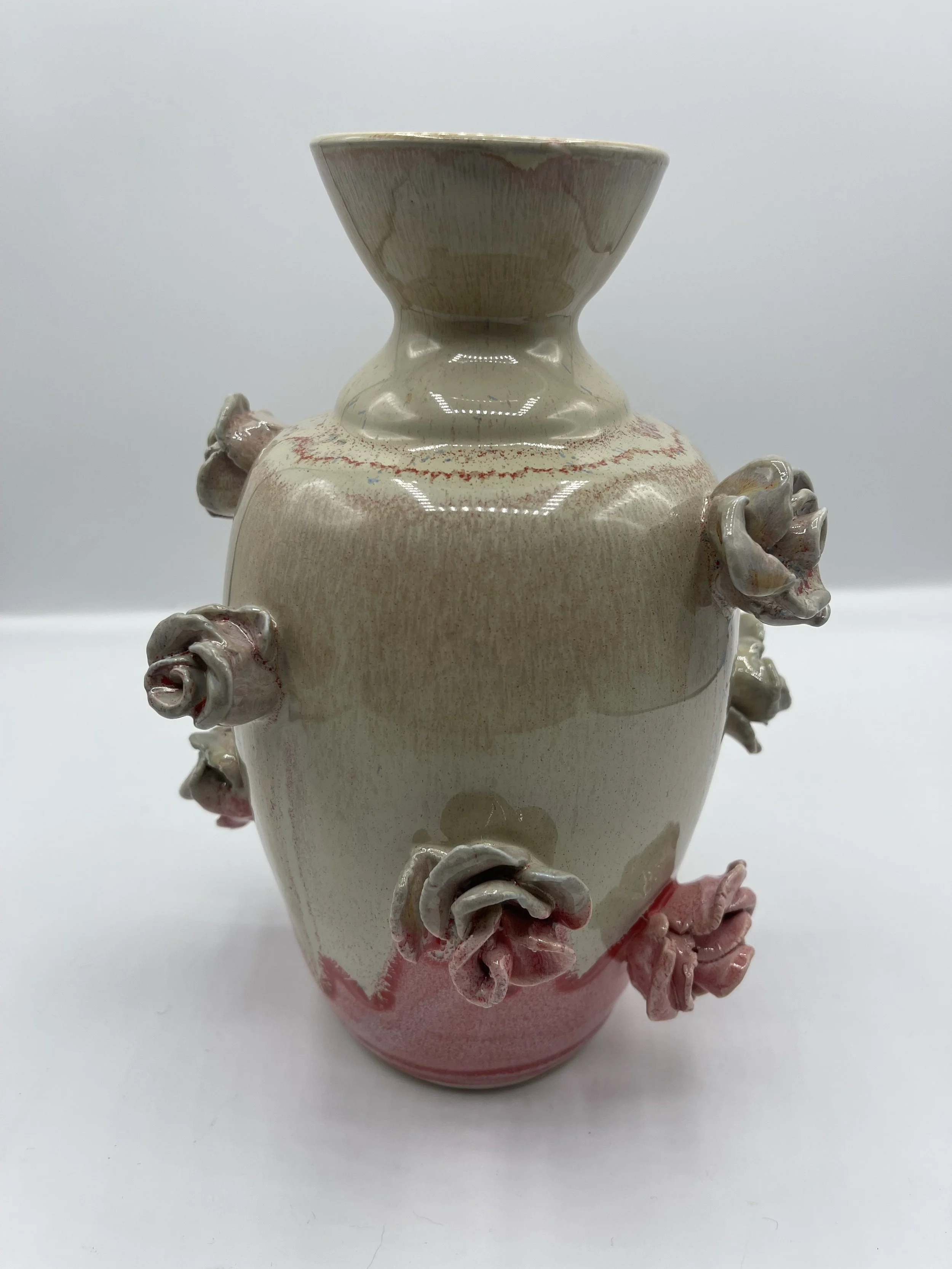 Categories: All Matcha/Sauce Bowls Pitchers fine art Coffee Pour Overs Citrus Juicers Clocks Incense Burners/Holders Sets Tea Pots Plates and Platters Jewelry holder Utensil Rest Spoon Rest Pet Bowls Jars Home Decor Mugs Cups and Tumblers Functional Items Chip and Dip Bowls Hand Painted Bowls and Dishes Vases Oil and Vinegar Jars Lidded Jars All / Tall white handmade vase with circle indent design $95.00 Handmade Porcelain Vase with Roses $80.00