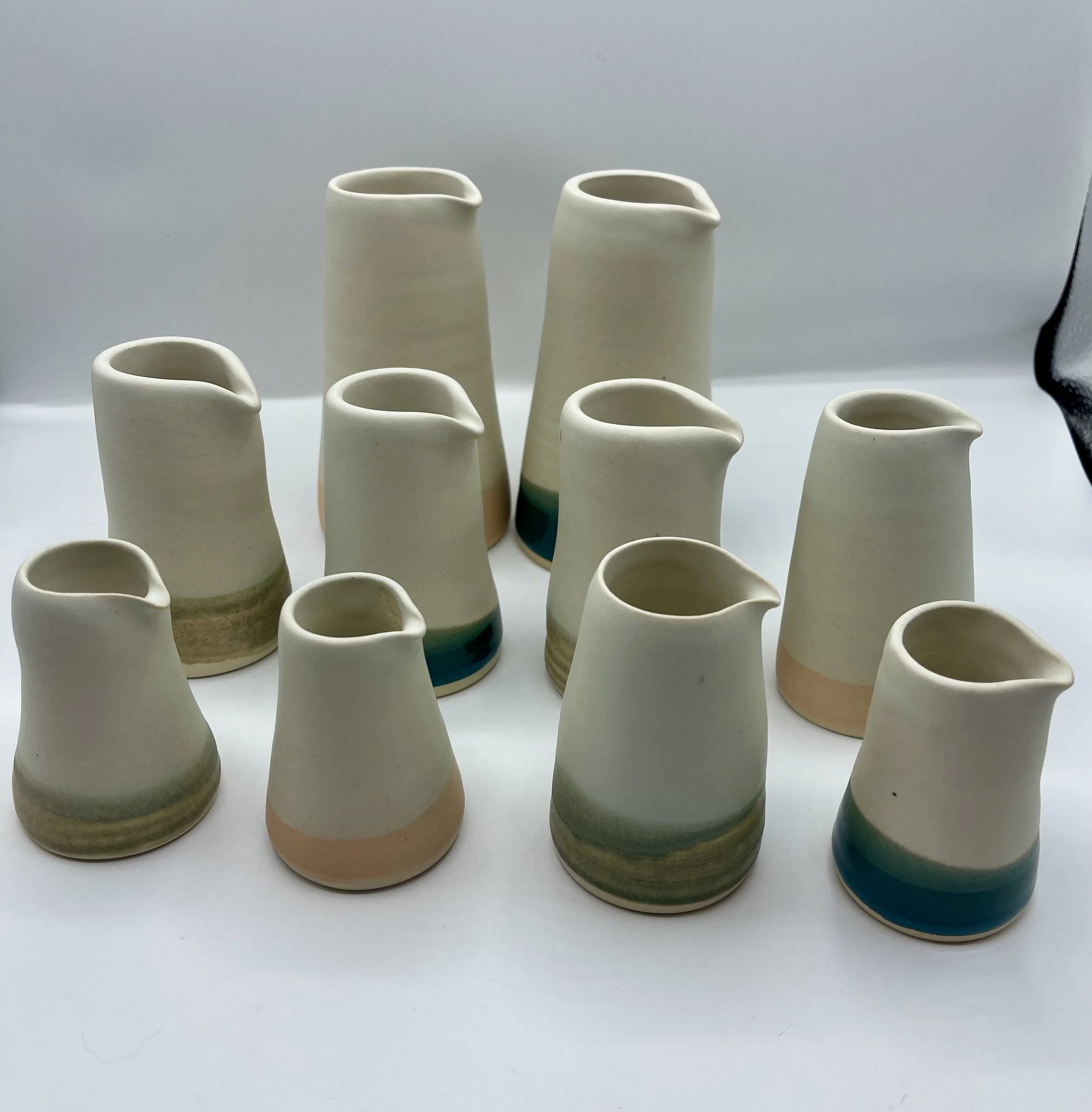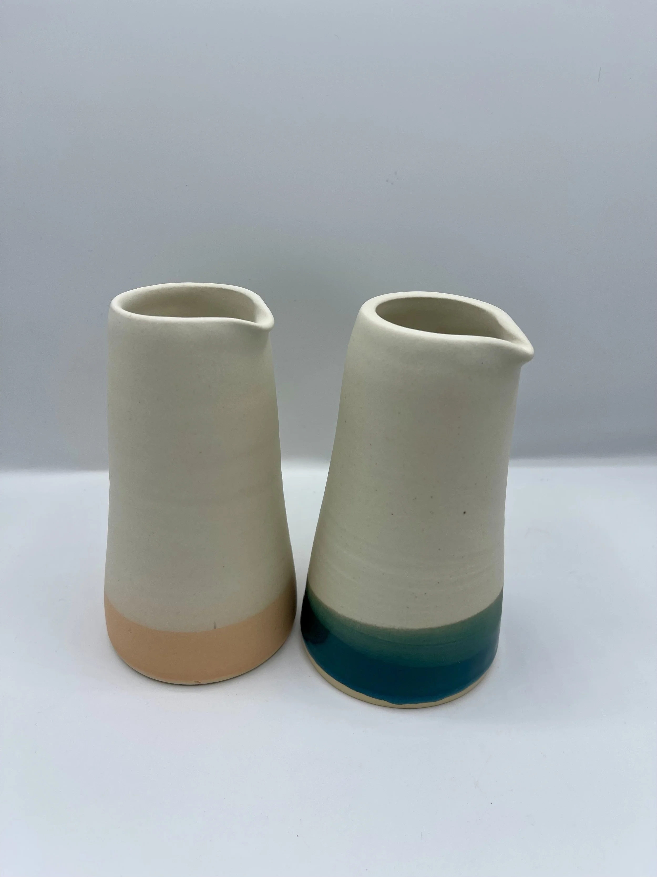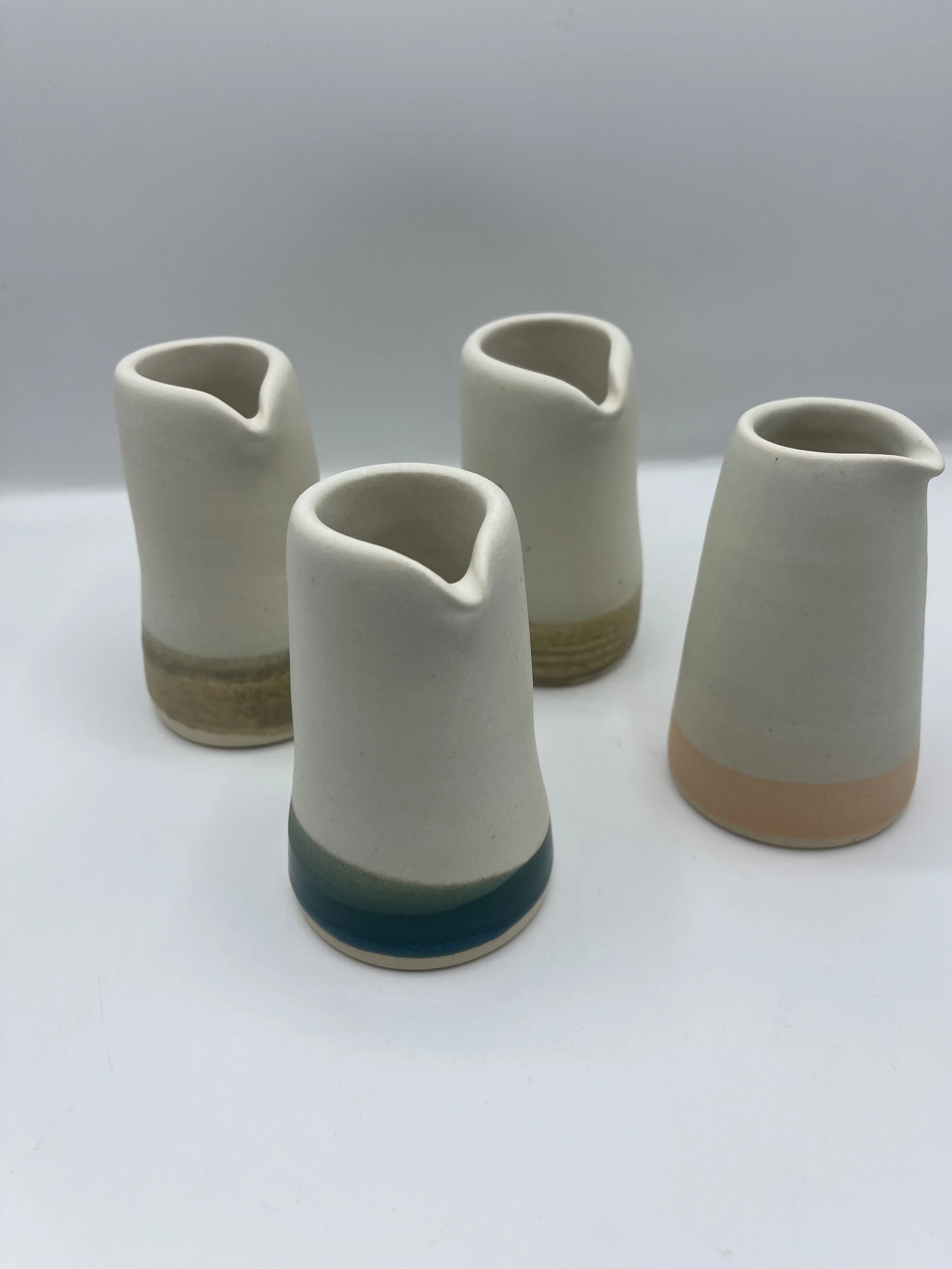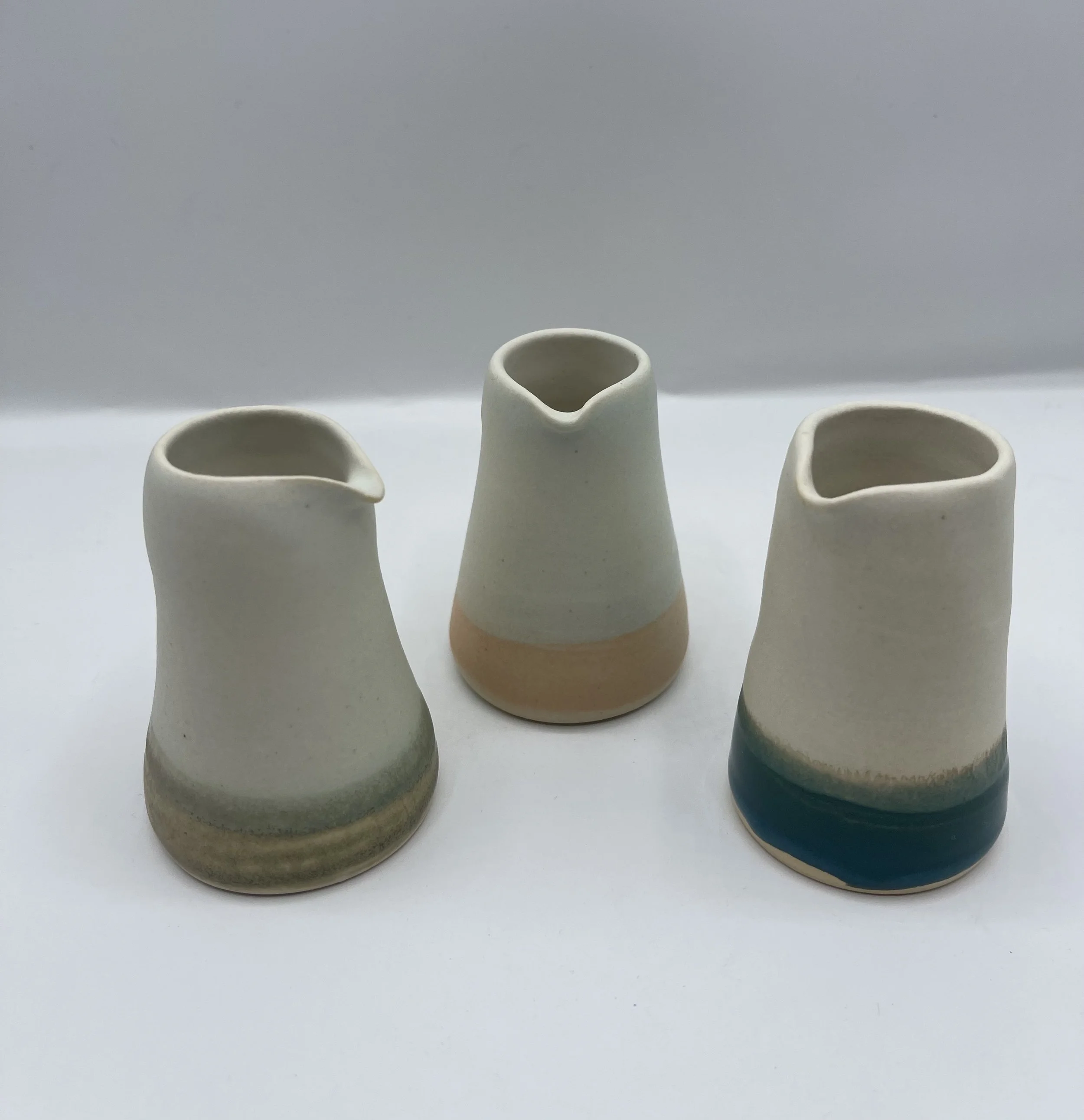 These handmade speckled pitchers are perfect for syrup or sauce. Each unique piece features a speckled, playful glaze, a comfortable handle, and an easy-pour spout. Ideal for any meal.